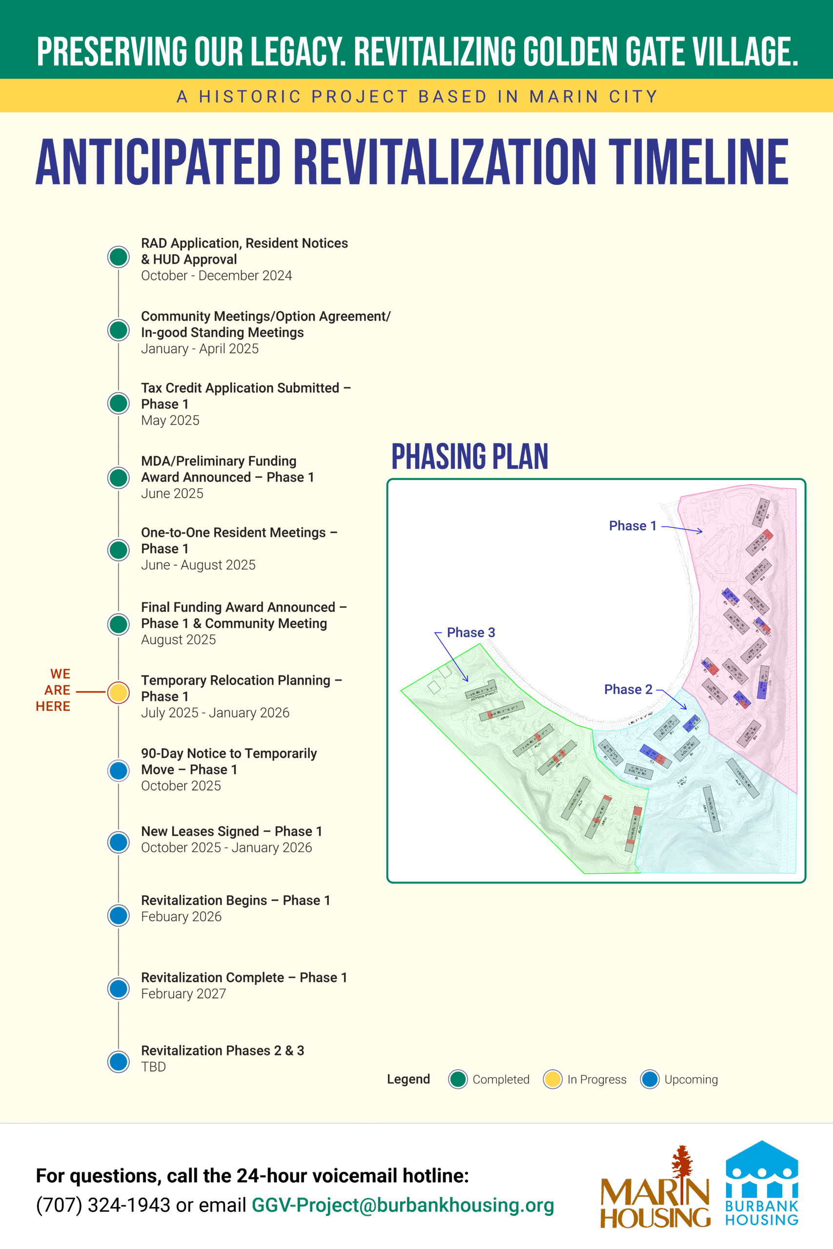 Working in collaboration with Golden Gate Village residents and the Resident Council, Marin Housing Authority (MHA) and Burbank Housing have partnered to revitalize Golden Gate Village and preserve its historic significance while also ensuring long-term affordability for residents.